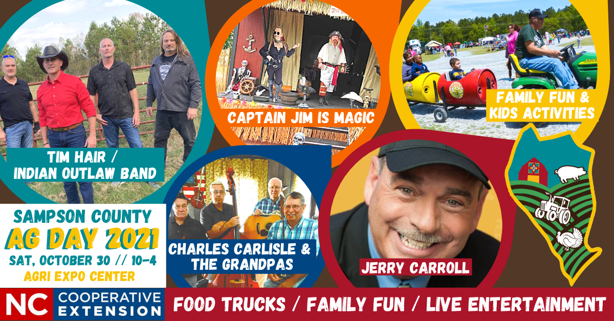 Be sure to mark your calendars to celebrate the harvest season in the county that provides $1.25 billion to our state economy through agriculture. For more information on how you can be a part of this great experience, call N.C. Cooperative Extension, Sampson County Center at 910-592-7161, visit our website, or our Facebook page at N.C. Cooperative Extension – Sampson County Center. We look forward to seeing you on Saturday, October 30.